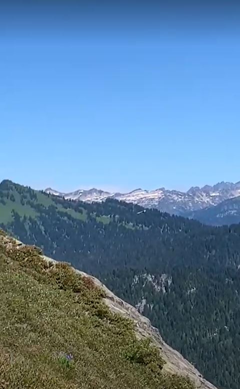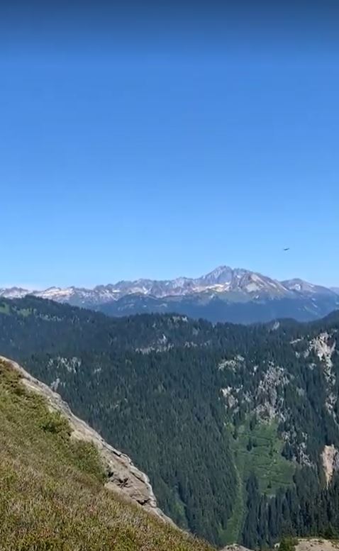 Another Washington morning meant a climb right away. For the first few hours I headed straight north away from Glacier Peak and found myself on a ridge between Mica and Milk Lakes. There was a southbound group here taking a lunch break. I stopped to talk for a minute and then made my way down the other side. Right after I left that group I started to run the next five miles into the Milk Creek valley when another low flying fighter jet passed by. This time I was out of the trees and had plenty of heads up to get a video.