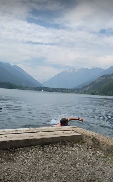 Finally 9 AM rolled around and the bus pulled up. Out of the woodworks came two other hikers just in time. On the bus I got to talking with Abbie & Elle. I assumed they were SOBO with lack of trail names or battle scars. They told me their plan to SOBO LASH Washington and Oregon and then bikepack the California coast. Halfway through the bus ride we stopped at the famous Stehekin Pastry Company. I grabbed something to go and hopped back on the bus to head to the North Cascades Lodge. Underneath the deck of the main building were picnic tables, kind of designated for hikers. Abbie, Elle, and I devoured some baked goods and we also met “Roadside”. He had a tattered Pacific Crest Trail logo hat and I think he was wearing one of those long sleeve button down fishing/desert shirts, which was also in pretty rough shape. He looked like the typical PCT hiker who had been on trail for a few months and at the end of his journey. The miles were reflected in his face. If there were any mirrors nearby I would be able to see another looking the same. Here I resupplied food at the general store and also scrounged through the hiker box near the post office. I enjoyed my last town meal at the restaurant with the typical burger, fries, and beer. With about an hour left in the village I decided to go for a swim in Lake Chelan. It had been about a week since I showered so this would hold me over for a few more days.