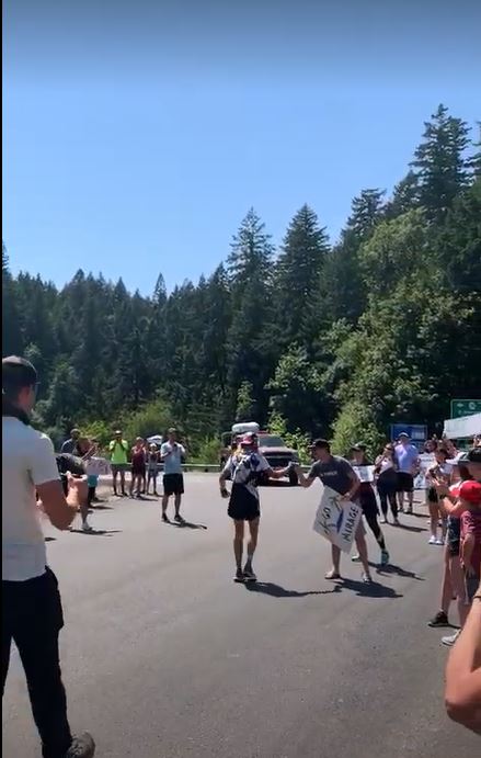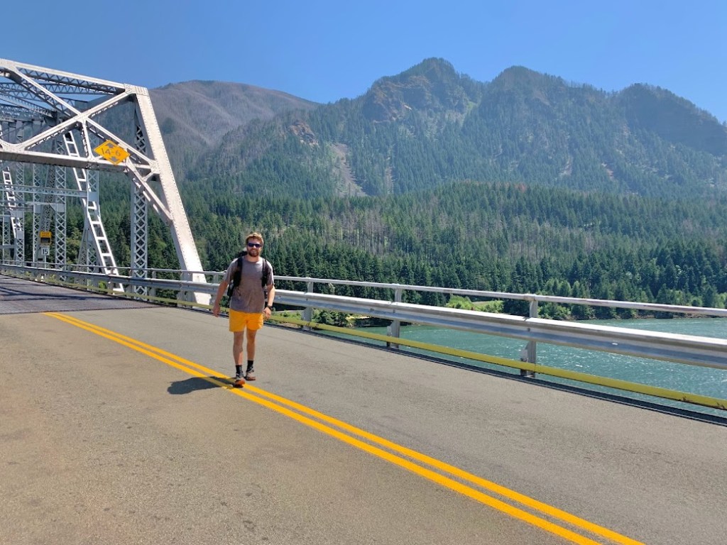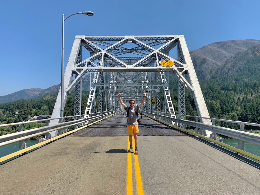 There was a small crowd gathered in Washington. No, they were not there for me. If the toll attendant wasn’t enough of a hint, I heard one of the spectators say Tim should be crossing the bridge in the next hour. I had already wasted my morning so I might as well see him cross this major landmark. While hanging around I did get recognized though. Two sisters and their kids were roadtripping around and remembered passing by and talking to me a couple of days earlier at Timberline Lodge.