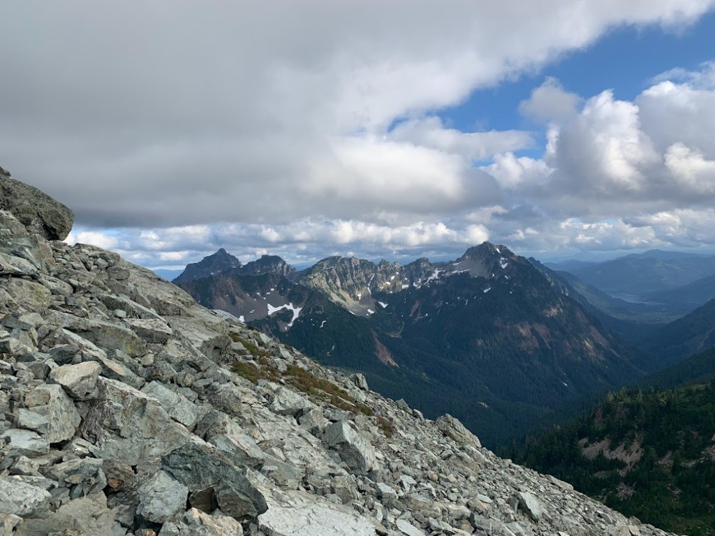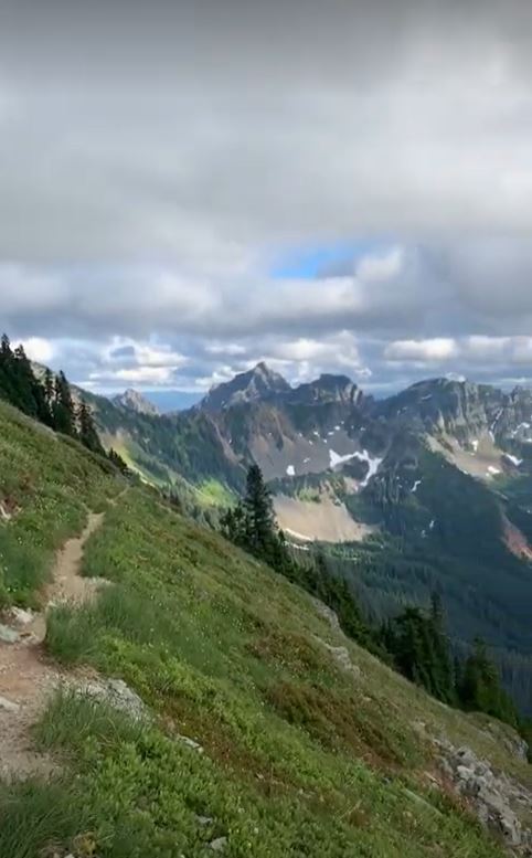 The sun was still hiding but that steep climb out of Snoqualmie was more than enough to warm up. The view kept getting better and better as I climbed upward. These mountains were something else. I was in the Wenatchee Mountains right in the middle of the Cascades. Later I heard from another hiker that this section had the most elevation gain per mile. That I agree with.