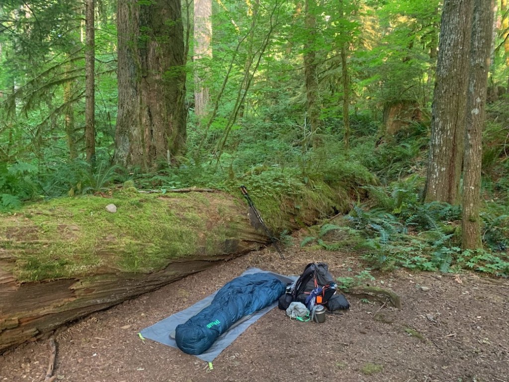Once Tim passed I followed suit and headed north. There was a good amount of climbing but I was mesmerized by the trees of Washington. They were old growth towering high up, covered in moss, and looked like they belonged in a painting. I strived for my short day twenty mile goal and curled up next to one of those large trees that had fallen.