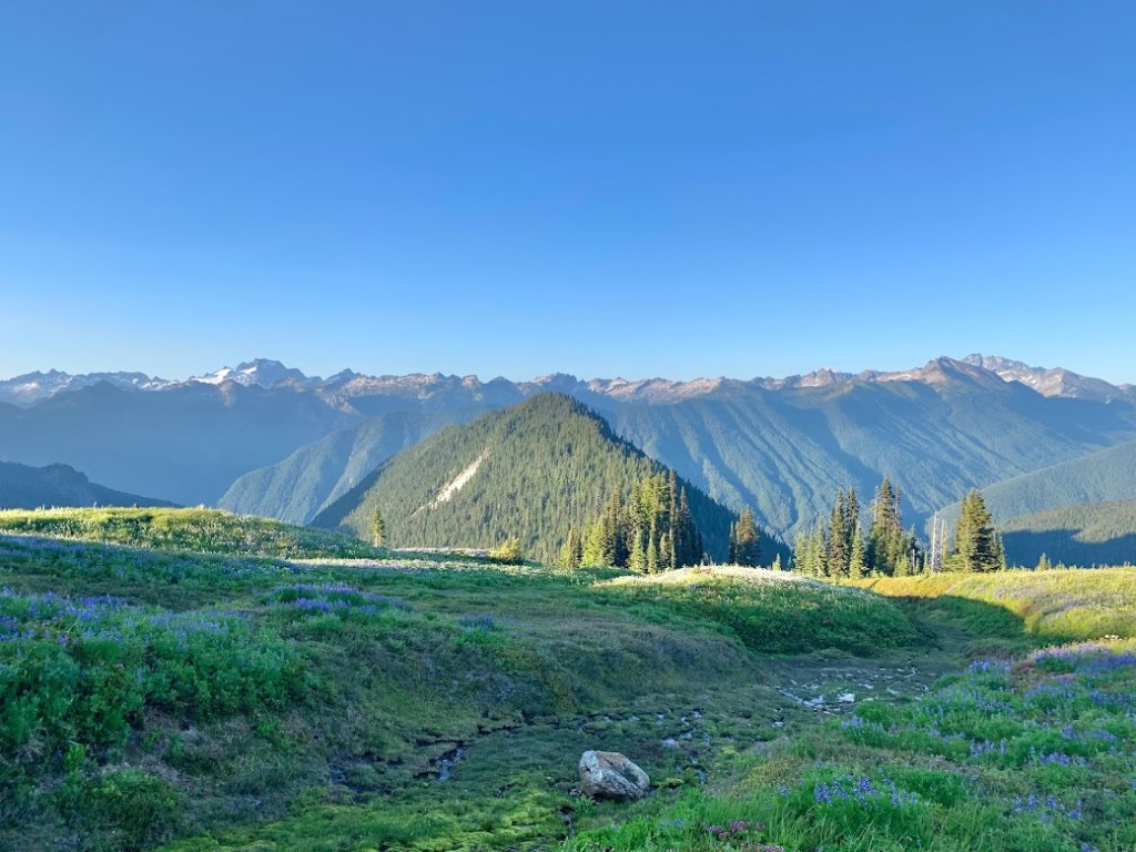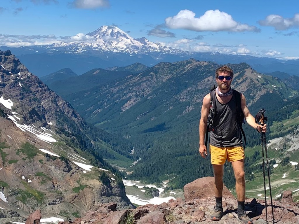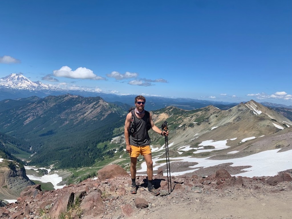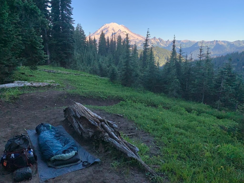 I woke up to my first clear and up close view of Mount Rainier. This was one of my best and maybe the best campsite the whole trail. I sat there and enjoyed the moment while the sun rose. A southbounder breezed by and was impressed by this spot. That was my cue to hit the trail. Soon after I started walking I saw another southbounder heading toward me. He pulled off to the side and stood straight looking like he was about to atten-hut. He yelled at the top of his lungs as if he were announcing royalty entering “The First NOBO of the Day!”. I immediately started laughing, thanked him for the gesture, and of course told him to have a good hike. That encounter stuck in my head for the rest of the day and really the rest of my hike. I wonder how many days he kept that up and how many exhausted northbounder spirits he lifted.