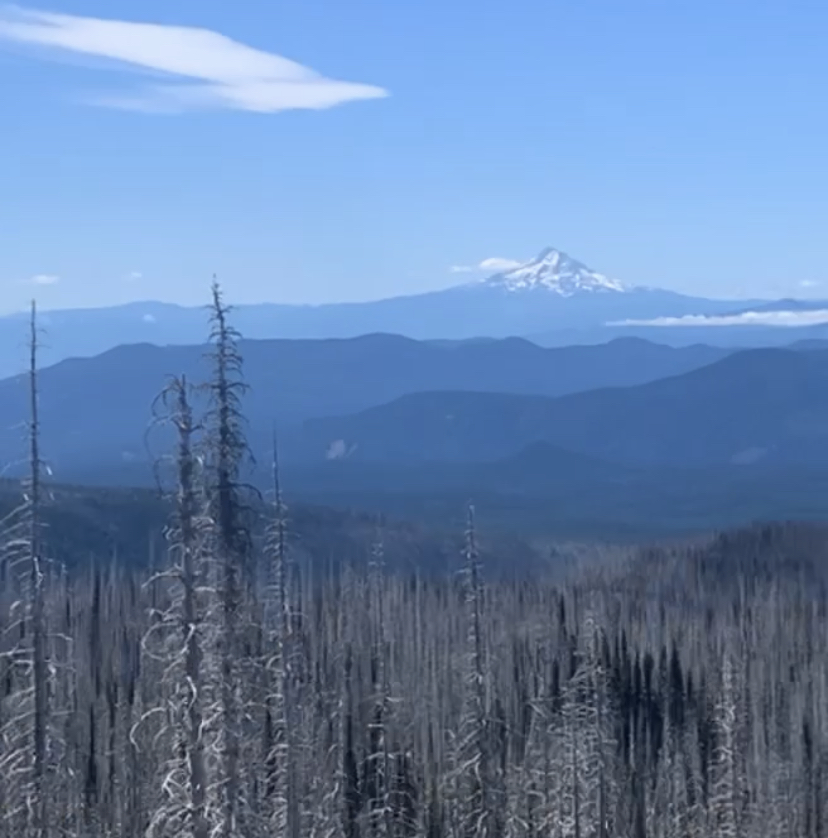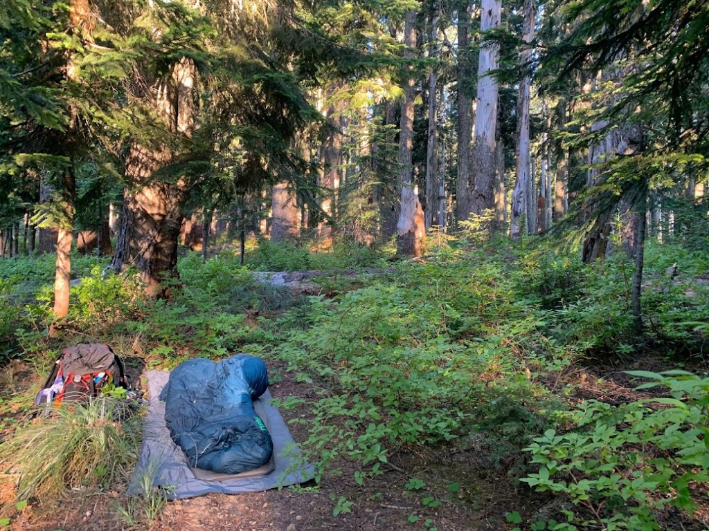 All day I was underneath the canopy with ferns scattered alongside the trail. There were several bridges crossing over creeks and rivers, creating plenty of opportunities to stop. I wanted to have a better day than yesterday but I eventually stopped at the Panther Creek bridge to dunk my head and refill water. There I met “Brom” from Belgium who was doing a section hike. I refer to him as “Belgium Brom”. He was a cool dude and we shared some stories over water. A few hours before sunset I passed a spot with my first clear view looking ahead at Mount Adams. This would have been the perfect place to stop if it were a few miles further.