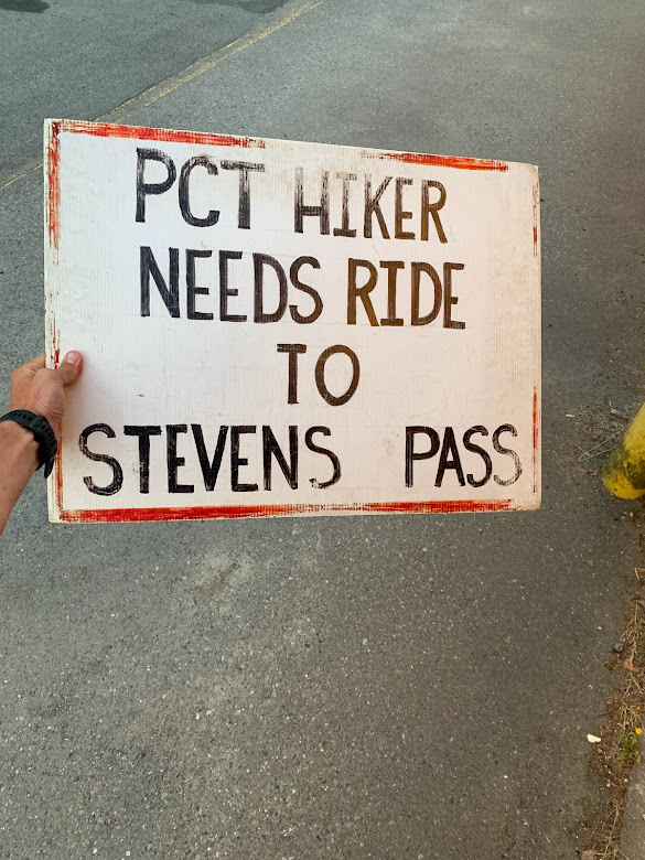 This was a busy highway crossing but it was so fast that cars did not want to stop. Eventually a minivan pulled over. A father and son were out doing a long road trip and living a semi vanlife. They drove me down from the pass and around the whole three blocks of Skykomish and dropped me at LouSki’s Deli. I remember they were pulling away but circled back around for the son to hand me a big bag of trail mix with a big smile on his face. I definitely felt like a homeless person but could not have been more grateful. At the deli I ordered a big sandwich and some drinks before walking across the street for a gas station resupply. I knew I had over 100 miles to Stehekin which made me scour the shelves for all they had. The last few days felt as or more difficult than the Sierra and here I was again having to resupply at a gas station like I did in Independence and Bishop. The cafe had a sign hanging in their window that they let hikers use for a hitch.