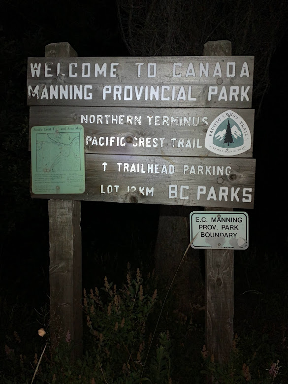This was the final push to Canada. I planned to run as much of this section as possible and try to make it to the border before dark. I quickly realized the grade was quite steep and not runnable. The closer I got to the border the more overgrown the trail was. Eventually I reached the northern terminus just after 10 PM. I used my GPS to send my coordinates along with a time stamp to my family to give them an update on my location. Even though I was on a tight schedule I could not help but stop for a while and take in this moment. Over three months of hiking I had made it from Mexico all the way across America to Canada. My goal was to make it to Canada by my birthday and I achieved that goal with just two hours to spare! I signed the trail log, took a picture on the monument, and cracked open the beer I packed out from Stehekin while simultaneously letting out a couple roars of relief. I did it! I completed my journey.